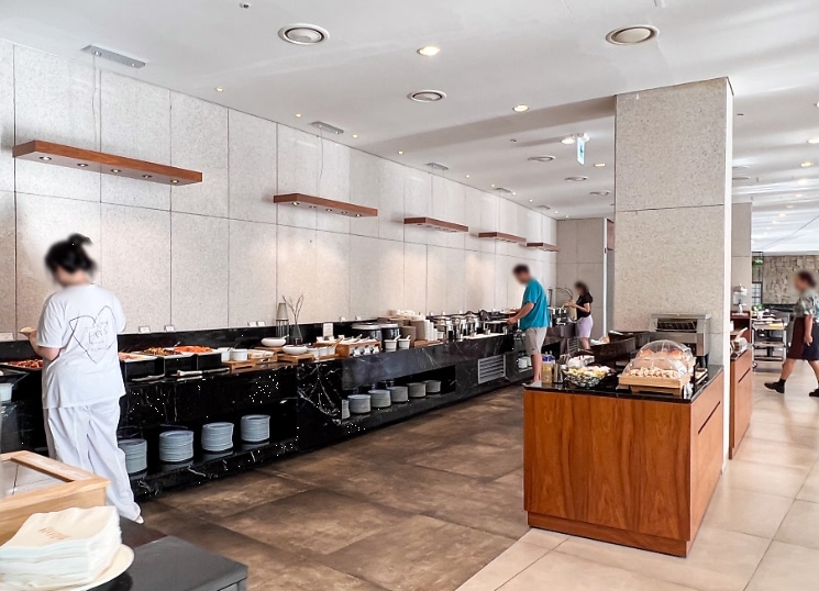 호텔 조식은 성인 기준 28,000원으로, 가격 대비 정말 푸짐하고 다양한 음식을 즐길 수 있었습니다. 음식은 뷔페 형식으로 제공되는데, 다양한 음식들이 모두 신선하고 맛있었어요.