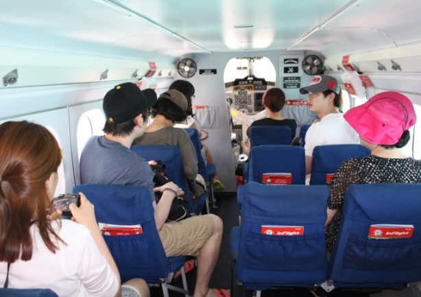 저는 몰디브 도착 후, 수상 비행기를 이용해 두짓타니 리조트로 이동했습니다. 수상 비행기는 약 15명 정도 탑승할 수 있는 작은 비행기로, 약 35분 정도 하늘을 날아 리조트에 도착합니다. 창문 너머로 몰디브의 수많은 작은 섬들과 끝없이 펼쳐진 에메랄드빛 바다를 바라보며, 이곳이 정말 몰디브임을 실감할 수 있었습니다.