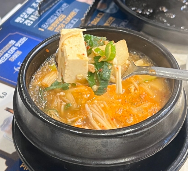 제가 좋아하는 된장찌개는 고기와 함께 먹기에 너무 좋은 메뉴였어요. 3,000원이지만, 영수증 리뷰 이벤트 덕분에 무료로 제공받을 수 있었어요! 된장찌개는 진하고 구수한 맛이 나서 고기와 함께 먹으면 더욱 맛있었어요.