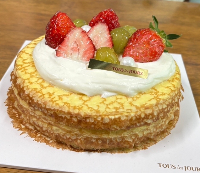 크레이프를 좋아하는 분들이라면 이 케이크가 딱이에요. 얇게 구운 크레이프를 여러 겹 쌓아 올리고, 그 사이사이에 부드러운 생크림을 가득 샌드해서 만든 제품입니다.