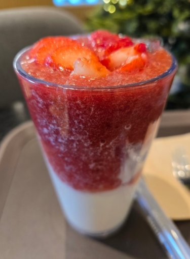 딸기 퓨레가 듬뿍 들어가 있어서 첫 모금부터 신선한 딸기 맛이 진하게 느껴지는데요. 인공적인 딸기 향이 아니라, 딸기 본연의 상큼함이 살아 있어 더욱 매력적입니다.