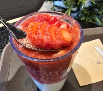 딸기 퓨레가 듬뿍 들어가 있어서 첫 모금부터 신선한 딸기 맛이 진하게 느껴지는데요. 인공적인 딸기 향이 아니라, 딸기 본연의 상큼함이 살아 있어 더욱 매력적입니다.