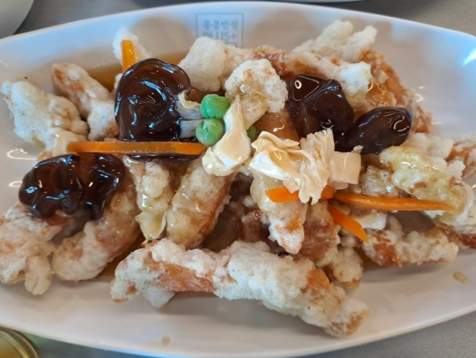 돼지 등심을 사용한 고기는 도톰하고 촉촉하게 잘 구워져 담백하면서도 고기의 풍미가 살아 있어요. 소스는 달콤하면서도 새콤한 맛이 일품인데, 탕수육을 먹을 때 그 소스와의 조화가 정말 매력적입니다. 이 소스는 따로 부어주는 스타일이라, 찍먹을 선호하시면 요청하면 됩니다.
