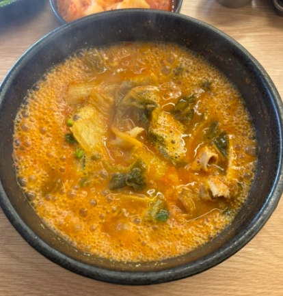 뼈와 우거지가 함께 들어가 있어 국물이 더욱 진하고 시원한 맛을 냈습니다. 특히 뼈에서 우러난 깊은 맛과 우거지의 고소한 맛이 잘 어울렸어요.