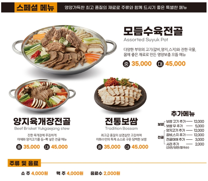 특히, 수육과 함께 다양한 채소들이 듬뿍 들어가 있어 국물까지 영양 가득한 한 끼를 제공합니다.