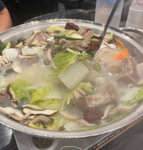 모듬수육전골은 담백한 수육과 진한 육수가 조화를 이루는 메뉴입니다. 수육이 푹 삶아져 나와 한 조각을 집어 입에 넣었더니 부드럽게 녹아내리듯 씹혔어요.