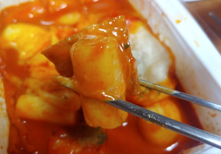 그다음에는 떡볶이 소스에 듬뿍 찍어 한입 먹어봤는데, 튀김이 소스를 머금으면서 바삭함과 촉촉함이 동시에 살아나더라고요. 떡볶이의 매콤한 맛과 튀김의 고소함이 정말 잘 어울렸어요. 시간이 지나면서 튀김이 소스를 흡수해 살짝 눅눅해졌을 때 먹는 맛도 별미였어요.