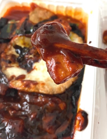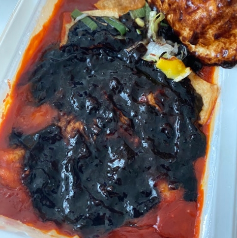 자빠떡볶이는 일반 떡볶이보다 훨씬 진한 짜장 색감을 띠고 있었어요. 기존 죠스떡볶이의 빨간 국물 대신 윤기 좌르르 흐르는 짜장 소스가 떡에 코팅되어 있어서 보기만 해도 맛있어 보였어요.