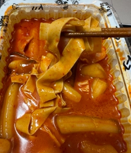 짜장소스가 걸쭉해서 떡에 잘 스며들어 있었고, 일반적인 떡볶이보다 달콤하면서도 감칠맛이 강한 편이었어요. 짜장 떡볶이는 맵지 않고 달콤한 맛을 즐길 수 있는 메뉴라서 어린아이들도 좋아할 맛이에요.