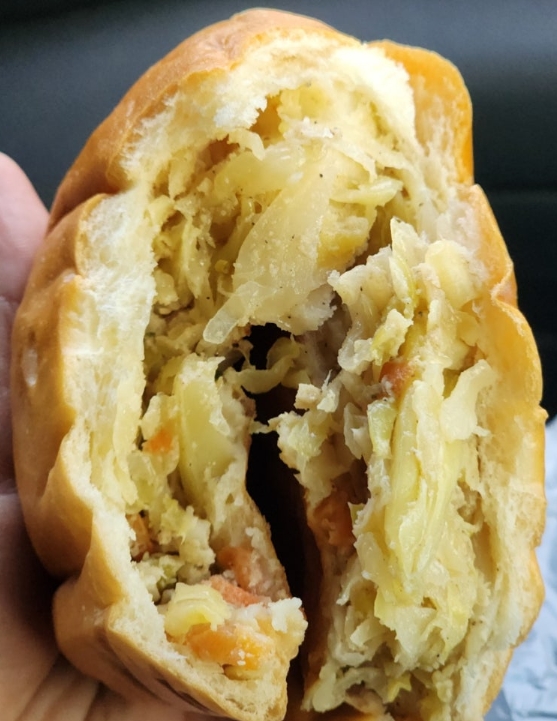 개인적으로 야채빵은 정말 독특한 맛이었어요. 단순한 야채빵이 아니라, 신선한 양배추, 양파, 당근 등을 마요네즈에 버무려 빵 속에 가득 채운 후 오븐에 구워서 만들어집니다.