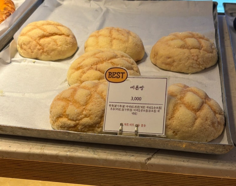 다만, 기대했던 것보다 메론 향이 강하진 않았어요. 너무 달지 않아서 부담 없이 먹기 좋은 빵이라고 생각해요.