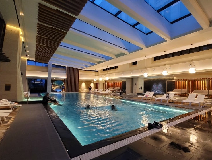 파라다이스시티 호텔의 수영장은 실내와 야외 두 곳으로 나뉘어 있습니다. 실내 수영장은 따뜻한 온도로 유지되어 있어 사계절 내내 이용할 수 있으며, 넓고 깨끗한 시설이 인상적이었습니다.