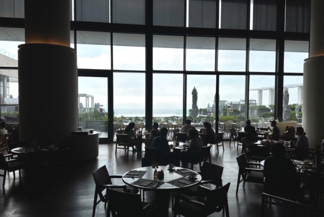 조식은 G층의 '다모임' 뷔페에서 제공되며, 창가석에 앉으면 수영장에서 즐겼던 인피니티 풀이 보이는 멋진 뷰를 즐길 수 있답니다.