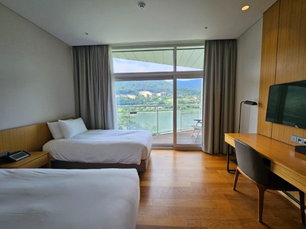 객실의 북한강 뷰는 정말 멋졌어요. 창 밖으로 보이는 푸른 자연 경관이 마음을 편안하게 해주어서 힐링이 되었어요.