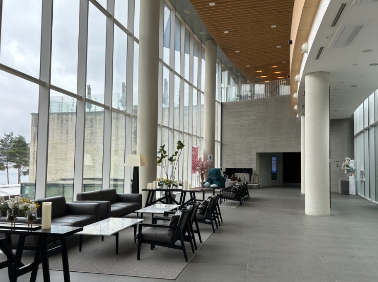 로비에 들어서자 넓고 아늑한 분위기가 반겨주었어요.
