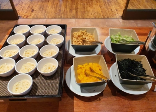 또한, 샐러드, 과일, 베이커리 등의 건강식도 함께 제공되어, 누구나 취향에 맞게 골라 먹을 수 있었습니다.