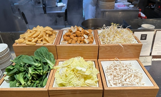 뷔페 라인에는 여러 종류의 따뜻한 음식들이 준비되어 있었는데, 일본식 우동과 한국 전통의 반찬들이 있어 아침에 든든히 한 끼를 해결할 수 있었습니다.