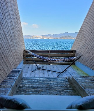 2층에 위치한 가장 큰 규모의 노천탕에서는 바다를 바라보며 온천욕을 할 수 있어 정말 좋았습니다.