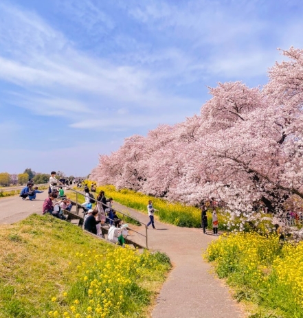 또한, 쿠마가야는 유채꽃과 함께 벚꽃이 만개하는 명소로, 일본 벚꽃 명소 100선에 선정된 곳입니다. 야간 라이트업까지 즐길 수 있어, 저녁에도 벚꽃을 감상할 수 있는 매력이 있습니다.