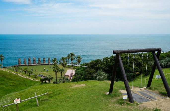 선멧세 니치난은 칠레 이스터 섬에서 볼 수 있는 모아이 상을 복원한 일본의 테마파크입니다. 세계 7대 불가사의 중 하나인 모아이 상 10구가 태평양을 배경으로 나란히 서 있는 이곳은 미야자키를 대표하는 관광지 중 하나입니다.