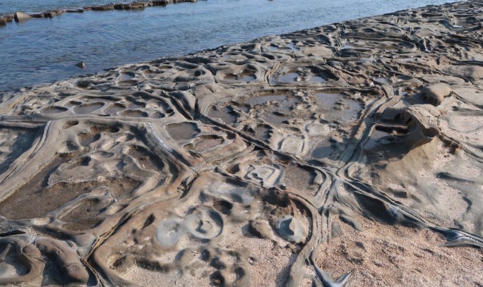 아오시마는 섬 주위가 1.5km밖에 되지 않는 작은 섬으로, 섬을 둘러싸고 있는 이 바위 지형은 마치 인공적인 조각품처럼 보이지만 사실은 오랜 세월에 걸쳐 형성된 자연의 작품입니다. 사암과 이암이 교차하여 만들어진 지층이 파도에 침식되고 융기되면서 형성된 독특한 지형은 아오시마 섬을 둘러싸고 있는 도깨비 빨래판을 만들어냈습니다.
