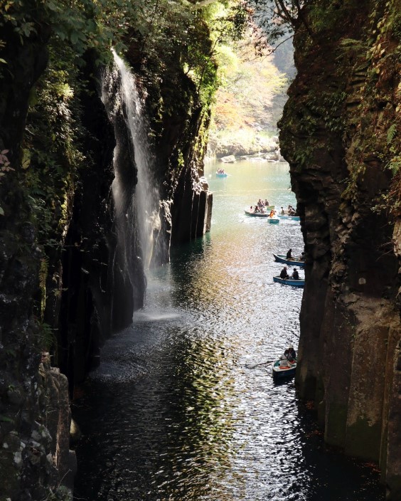 다카치호 협곡은 오래전 용암이 급속히 냉각되며 형성된 주상절리와 함께, 미야자키에서 꼭 가봐야 할 대자연의 경이로운 장소입니다. 협곡을 따라 보트 위에 앉아 천천히 흘러가며 폭포와 주상절리의 장관을 가까이서 감상할 수 있습니다.