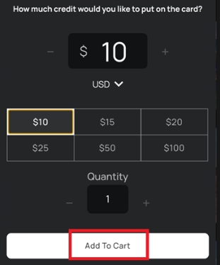 원하는 카드 이미지를 선택한 후, ‘How Much?’ 버튼을 눌러 최소 $10부터 최대 $100까지 원하는 금액을 선택합니다.