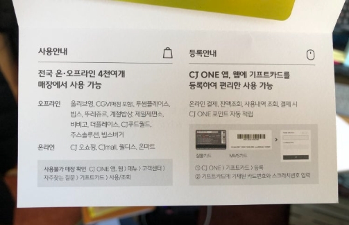 올리브영, CGV, 빕스 등의 매장에서 실물카드 형태로 구매 가능