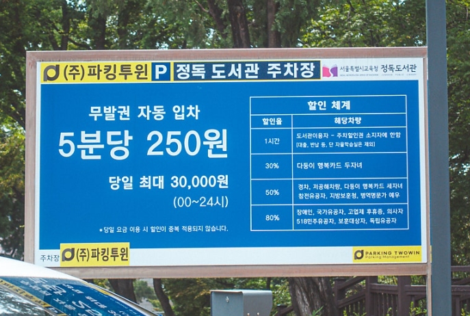 차로 방문하실 경우, 정독도서관 주차장을 이용하시면 됩니다.