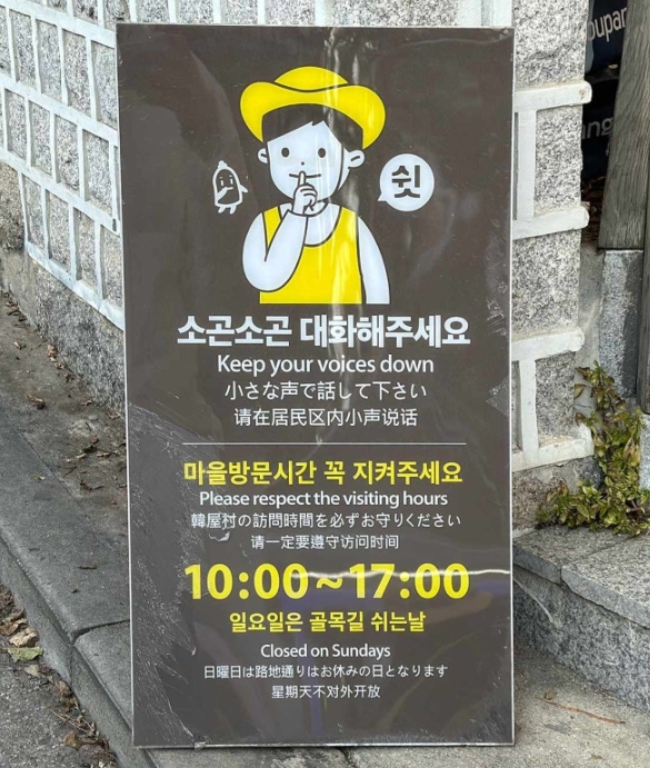 북촌 한옥마을은 조용히 다니는 것이 중요해요. 실제로 사람들이 살고 있기 때문에 너무 시끄럽게 떠들지 않도록 주의해야 합니다.