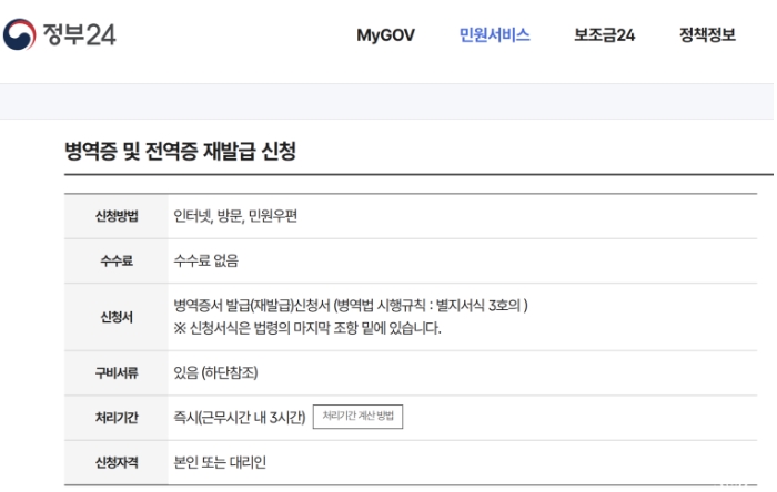 정부24에서 전역증 재발급 신청하기 (온라인 신청)