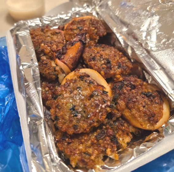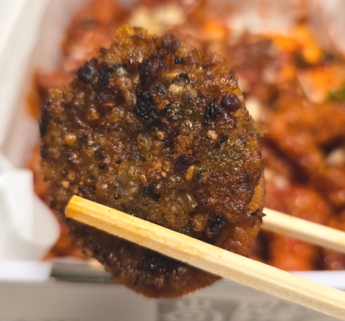 오징어순대를 포장한 후 30분이 지나서 먹었는데도 바삭함이 살아있고, 촉촉한 식감이 그대로 유지되었습니다. 겉은 마치 누룽지처럼 바삭하고, 속은 쫄깃한 오징어순대의 매력이 그대로 느껴졌습니다.