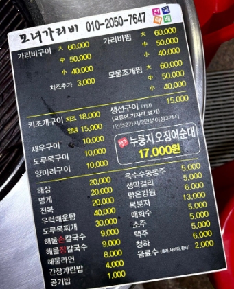 모녀가리비에서는 다양한 가리비 요리도 판매하지만, 대부분의 손님들이 오징어순대만 포장해 가는 곳입니다. 대표 메뉴인 누룽지 오징어순대는 한 번 조리하면 6개씩 나오며, 웨이팅이 길어질 수 있으니 시간 여유를 두고 방문하는 것이 좋습니다.