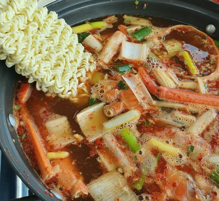 홍게를 다 먹은 후에는, 고소한 게딱지 볶음밥과 홍게라면을 먹어야죠