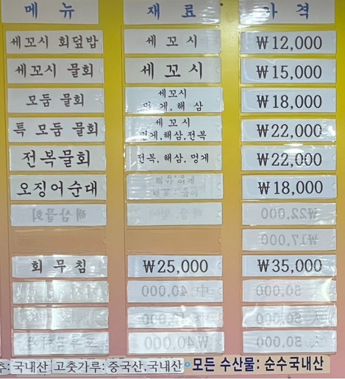 주차: 매장 앞 또는 속초국제여객터미널, 해양경찰서 앞 주차 가능