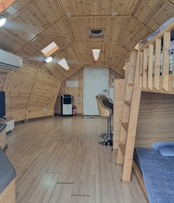 문을 열면 바로 보이는 것은 깔끔하게 정돈된 실내 공간이었고, 바닥에는 전기 온돌이 깔려 있어서 겨울철에도 춥지 않게 머물 수 있도록 되어 있었습니다.
