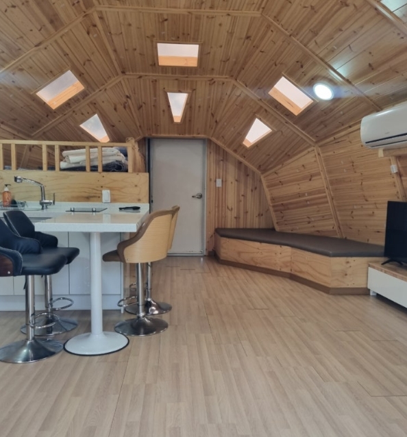 문을 열면 바로 보이는 것은 깔끔하게 정돈된 실내 공간이었고, 바닥에는 전기 온돌이 깔려 있어서 겨울철에도 춥지 않게 머물 수 있도록 되어 있었습니다.