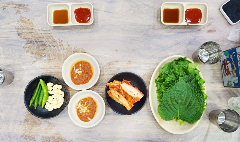 상차림집에 도착했더니 사람들이 정말 많았어요. 예약 없이 갔지만 다행히 빈 테이블이 있어서 바로 착석할 수 있었습니다.