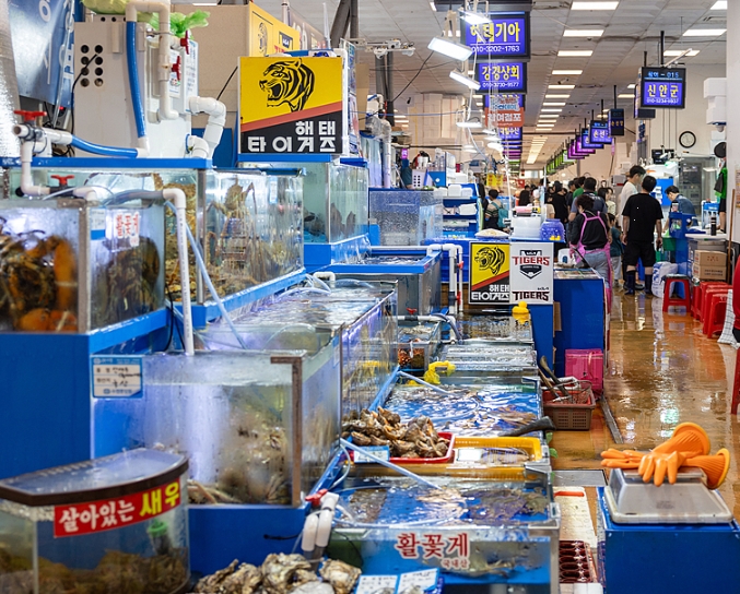 1호선 노량진역 9번 출구 → 직진 150m → 수산시장 도착