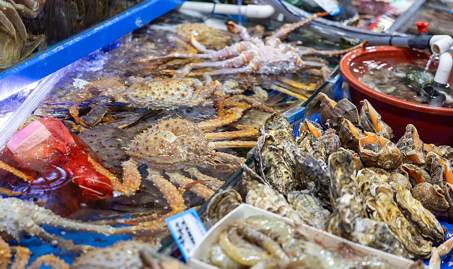 저희는 이날 킹크랩과 대게를 먹기로 해서 1층의 몇 군데 매장을 돌아보며 가격을 비교했어요. 가격 흥정이 가능하니 부담 갖지 말고 여러 곳을 둘러보는 게 좋아요.