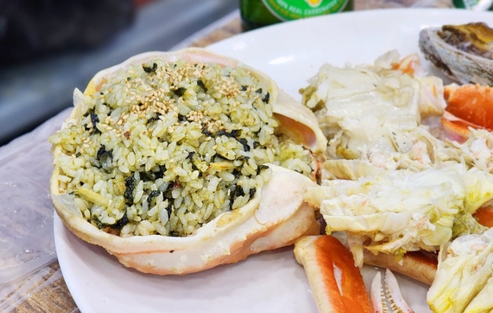대게를 먹을 때 절대 빼놓을 수 없는 게 바로 게딱지밥이죠.