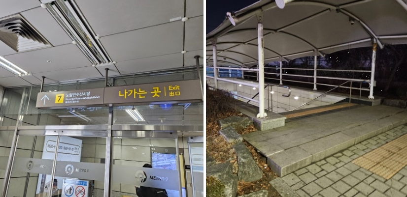 9호선 노량진역 7번 출구 → 지하보도 통과 → 수산시장 입구