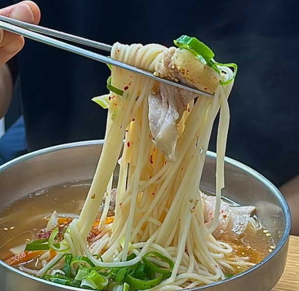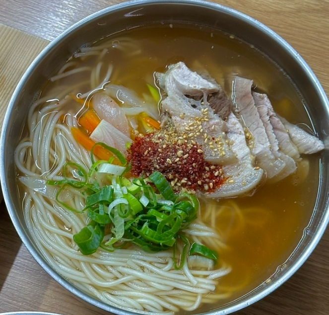 국수에 올라간 돼지고기가 엄청 푸짐하게 들어 있었어요. 무엇보다 잡내 없이 부드럽고 촉촉한 식감이 정말 인상적이었어요.