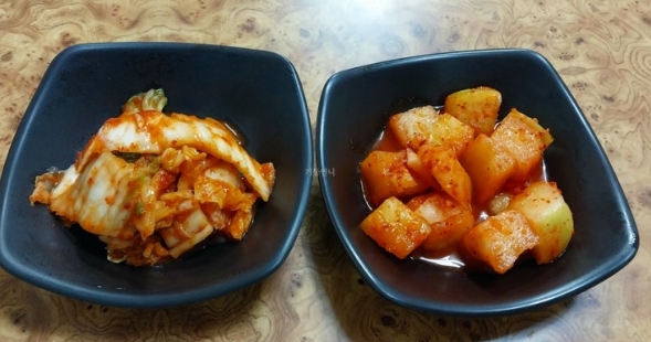 고기국수를 주문했습니다. 잠시 후, 반찬이 먼저 나왔어요. 김치와 깍두기였는데, 둘 다 맛이 좋아서 기대감을 살짝 올려주더라고요.