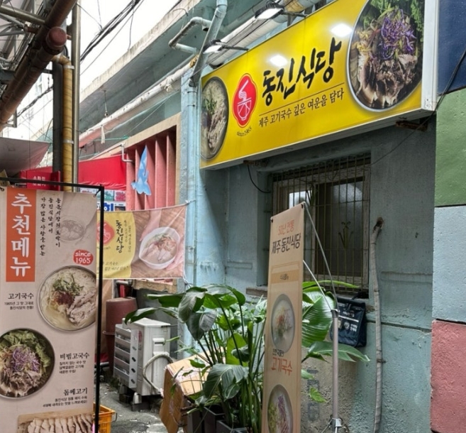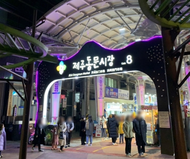 동문시장은 제주 여행 중 한 번쯤은 들르게 되는 곳이라 접근성이 좋아요. 시장 골목 쪽 입구에 배너가 있어서 유심히 살펴보면 어렵지 않게 찾을 수 있어요.