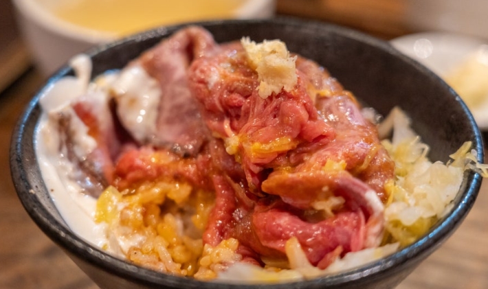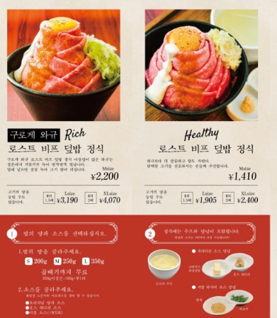 이 메뉴는 마블링이 많고 리치한 맛을 자랑하는 와규가 올라가고, 일반 로스트 비프 덮밥은 좀 더 담백한 맛이었어요.