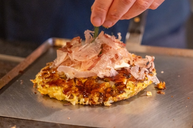 오코노미야끼는 만드는 과정을 보는 것만으로도 재미있어요. 철판에서 예쁘게 모양을 만들고 양면을 잘 구운 뒤, 소스를 발라주는 과정을 보는 재미가 쏠쏠하답니다. 마지막에 가쓰오부시를 뿌려주면, 정말 맛있는 오코노미야끼가 완성되죠.