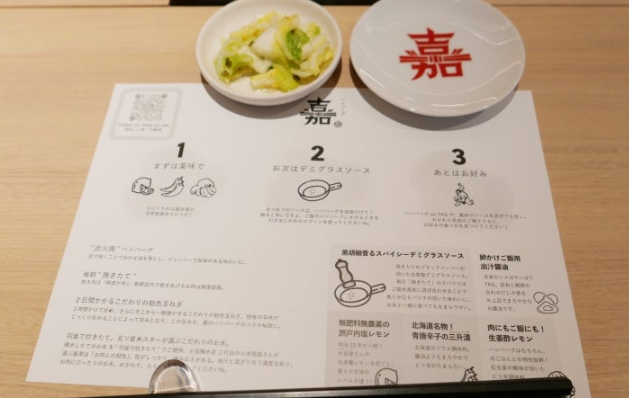 처음 방문한 함바그 요시는 먹는 방법에 대한 친절한 안내가 돋보였어요.