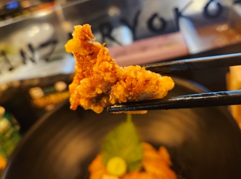 바삭하면서도 담백한 맛이 일품 치킨 가라아게는 튀김옷이 바삭하면서도 속살은 부드럽고 촉촉했어요. 느끼함 없이 담백한 맛이었어요.