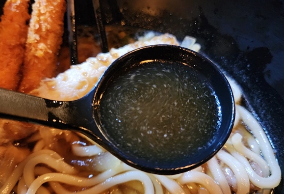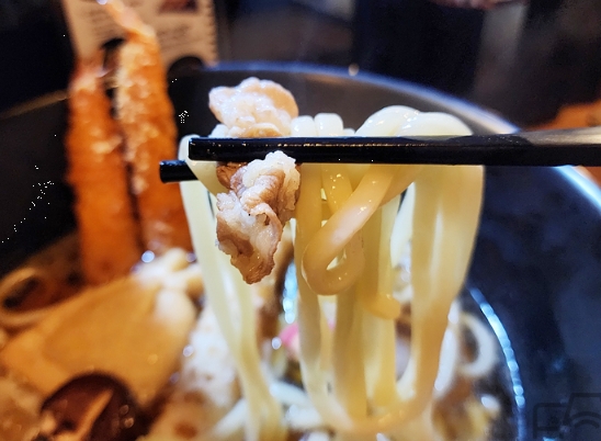 처음 맛본 메뉴는 바로 왕새우 튀김우동이었어요. 사실 우동은 어디서나 쉽게 접할 수 있는 메뉴라서 큰 기대를 하지 않았는데, 이곳의 우동은 한눈에 봐도 남다른 포스를 자랑했어요.